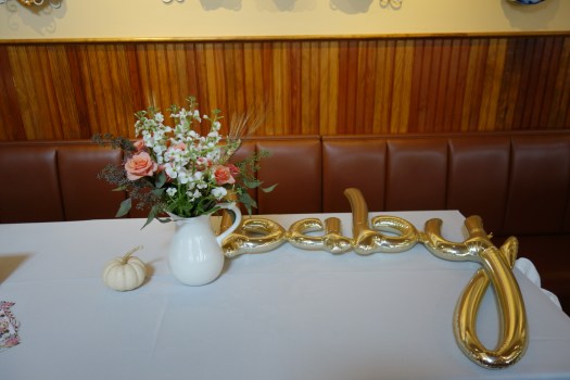Luckily, the events coordinator was fabulous and sent me all of the table measurements and a mock up of the room — highly recommend asking for this if you’re helping plan an event! Other key questions include how many tables will be in the room so you can make the right number of centerpieces and how early you are allowed in the space to set up. We were only allowed one hour of set up time, so I did a TON of prep the night and morning before and we knocked out the decorations in basically 20 minutes. (Shout out to Mama Crane and Collie for help setting up!)