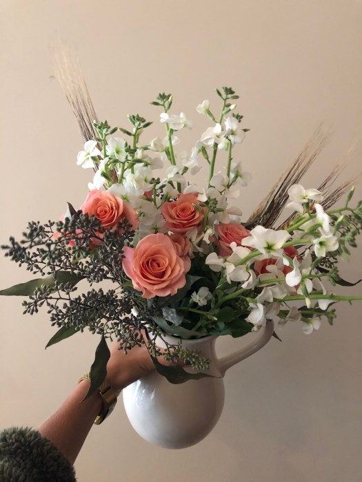 • Flower ArrangementsTrader Joe’s | I got all of the supplies for the floral arrangements from my local Trader Joe’s — their flower department is actually very robust and affordable. The weekend before the shower, I got all of the eucalyptus they had in stock because I was afraid that they would be out the weekend of the shower. (Yes, I looked like a psycho carrying it all down 14th St.) Eucalyptus lasts forever and it doesn’t dry up immediately when it doesn’t have water, so it’s ideal for table scapes or draping around the room. I got the actual flowers the day before the shower and just winged it, hoping they would look good together. The hay-like fillers were also from TJs and make a massive mess, but I think they helped pull the arrangements together! Before you run out and buy a ton of vases, raid your kitchen cabinets — I had all of these mason jars on hand already and just pulled from my personal vase stash and had more than enough vessels for the whole room.